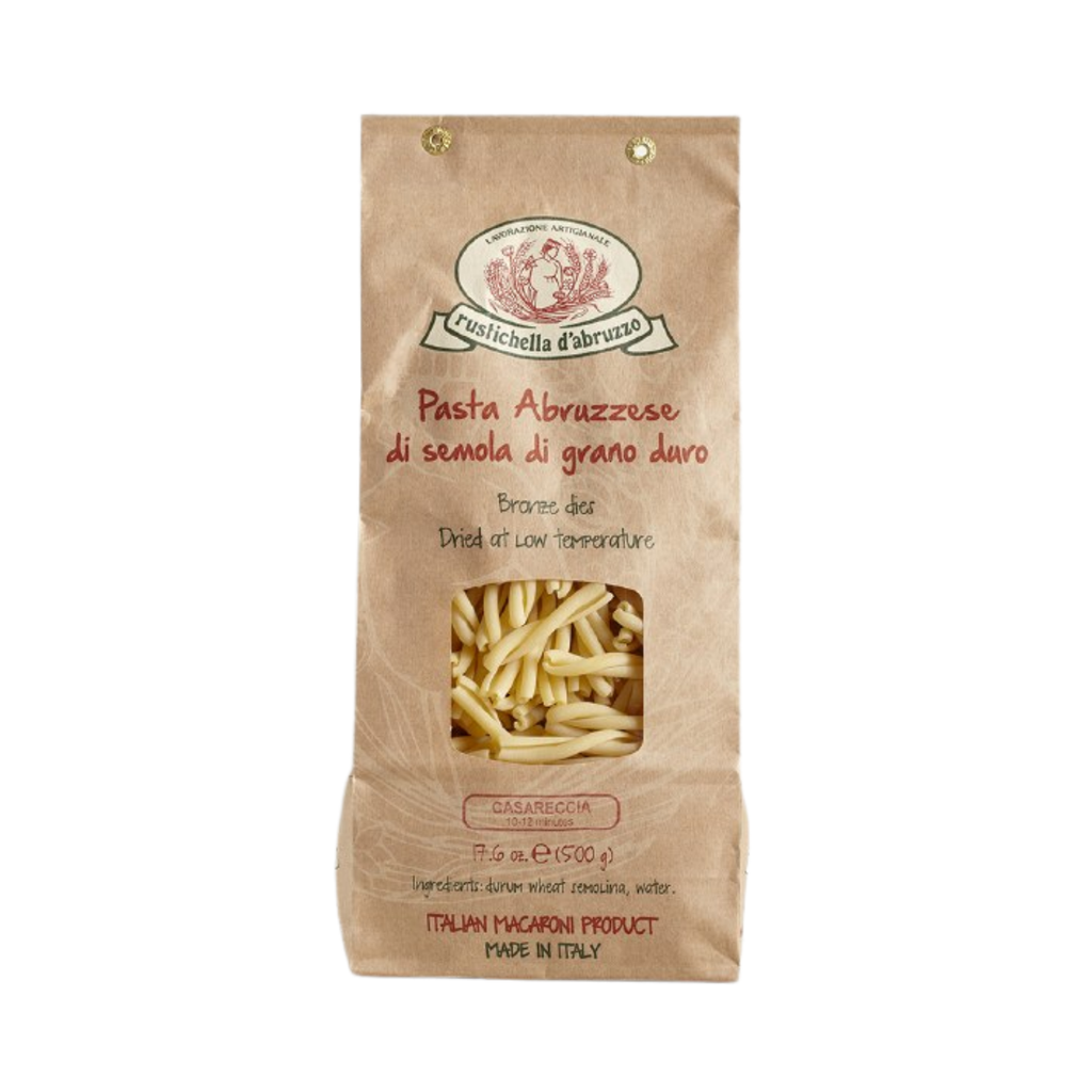 Rustichella d’Abruzzo Casareccia is traditional Italian pasta made in Abruzzo using high-quality durum wheat semolina and pure water. Produced using bronze dies and slow-dried at low temperatures, this pasta reflects the craftsmanship and quality of one of Italy’s most respected artisanal pasta makers.